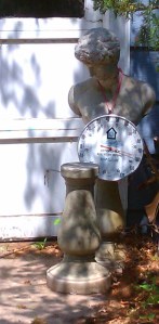 It has been hot for far too long. I feel the same about it as this guy does, but at least he is made from some sort of stone. I am cardboard, and I wilt in this weather. What a funny assemblage I found on my way to work…I did not put this together, I am just a witness. Further proof that we are all weird.