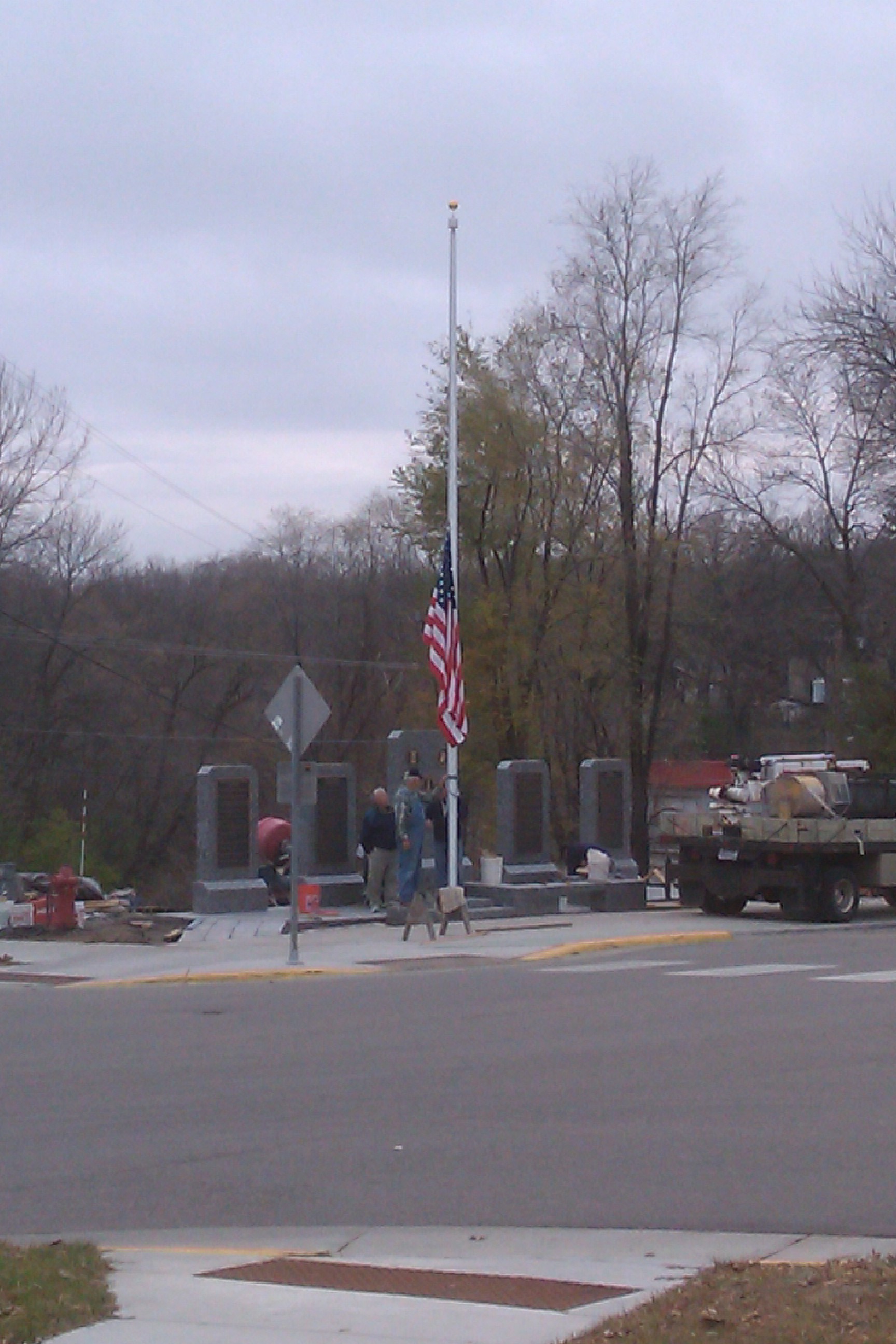 Watching these fellows place the flagpole in position, then raise the flag above the memorial, rang all those old bells in my memories. I have witnessed many seniors and veterans come by this corner to see the memorial components as they have been set & secured, and I can feel the bindings of our collective legacy, history and sacrifice woven between each one. The traffic slows, the visitors stroll up, they read and they pause. It is all very essential for us to remember; especially in this caustic political climate. Maybe the ritual of visiting this memorial corner will help our community to settle, bind together and focus us on our days ahead.