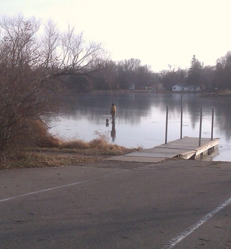 The pond has not been frozen for very long at all. It just iced over this past holiday week, but these guys were itchy. They just had to get out there and bait a hook. I know there are guidelines for ice depth and all that, and maybe they measured and tested and it proved to be just fine. But do they really need to fish that desperately to risk going in? I imagine they couldn’t sit too closely together or their combined weight would be a greater risk, so where’s the fun? That Carhart coat would not make swimming easy…the whole scene was just scary. So I ran.